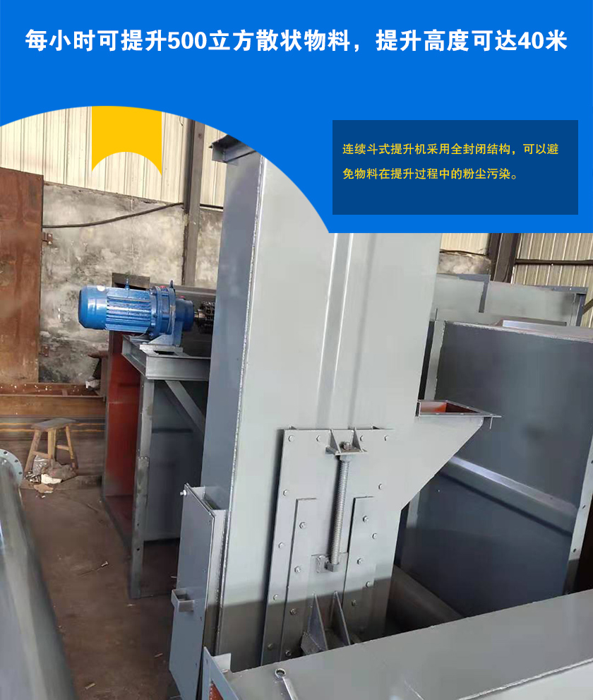 連續(xù)斗式提升機(jī)采用鏈條或皮帶進(jìn)行物料的垂直提升工作,提升高度可達(dá)40米,每小時(shí)可提升500立方的散裝物料,連續(xù)斗式提升機(jī)可按照用戶(hù)輸送要求定制設(shè)計(jì).