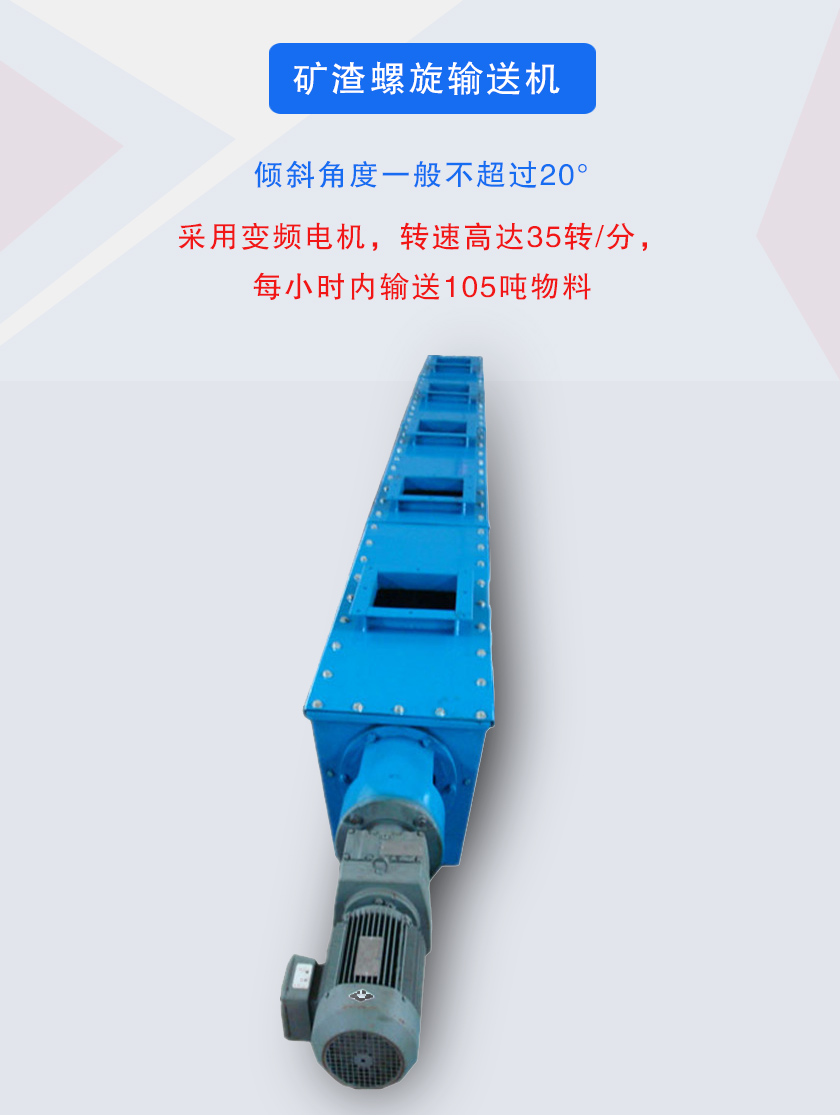 礦渣螺旋輸送機是一種用于輸送和處理礦渣的設備,礦渣螺旋輸送機傾斜角度一般不超過20°,它采用變頻電機,轉速高達35轉/分,設備耐磨性好,鎖風功能強,進而減少了能源的消耗。