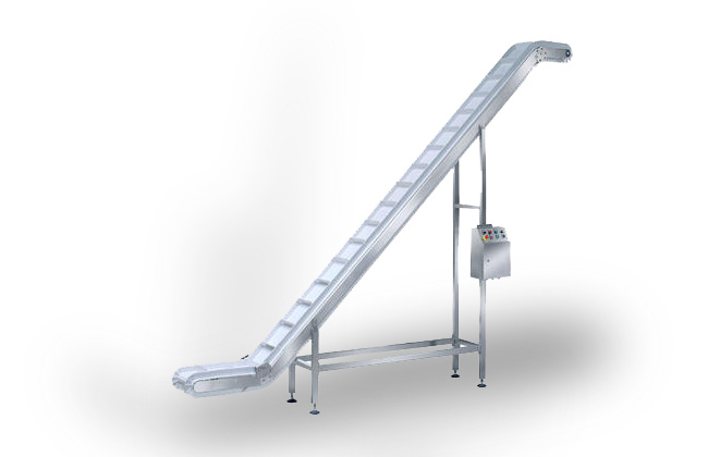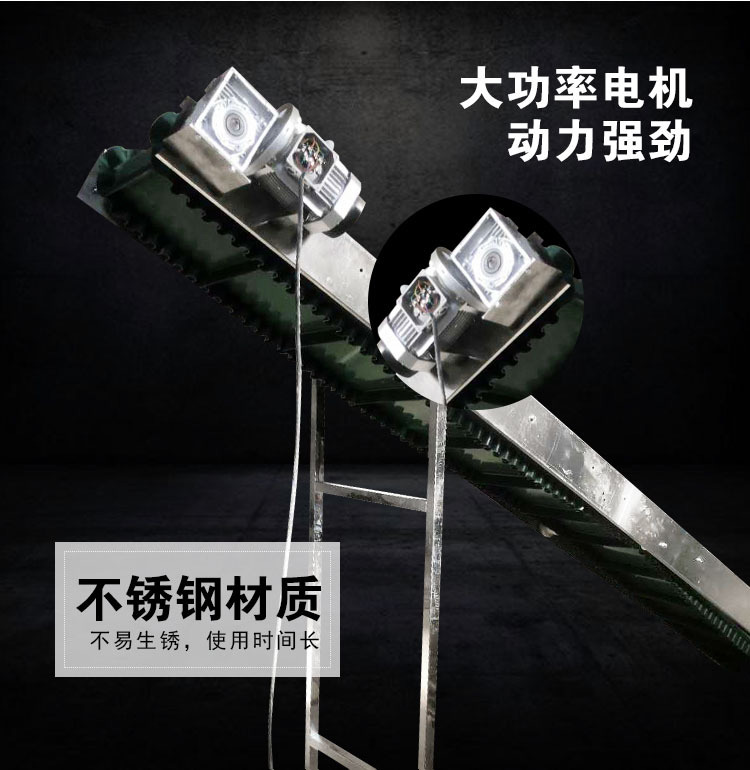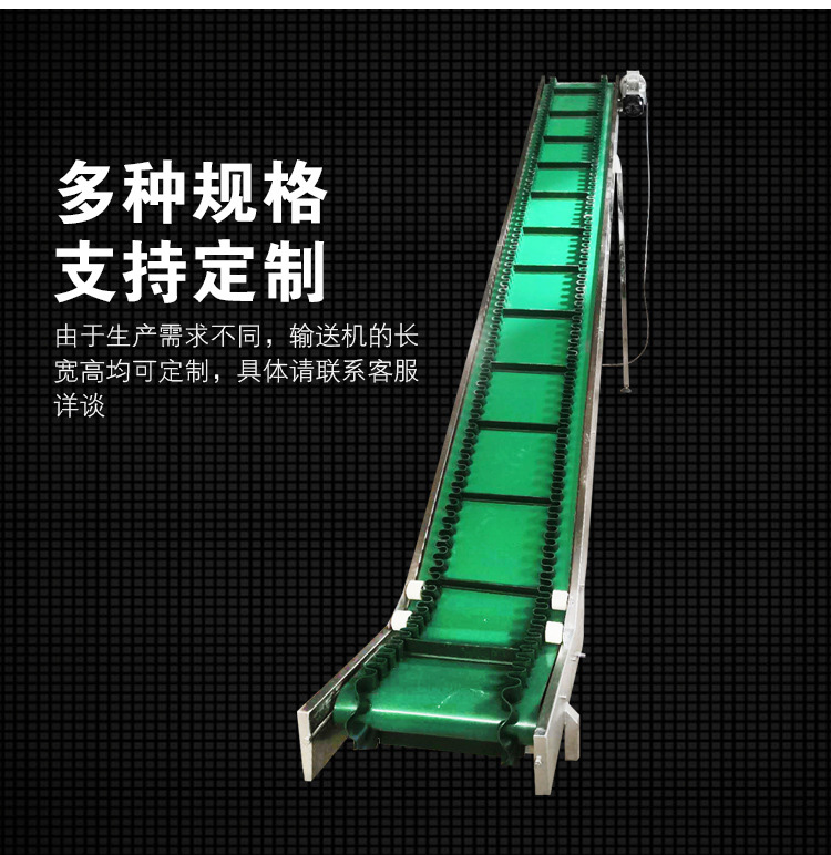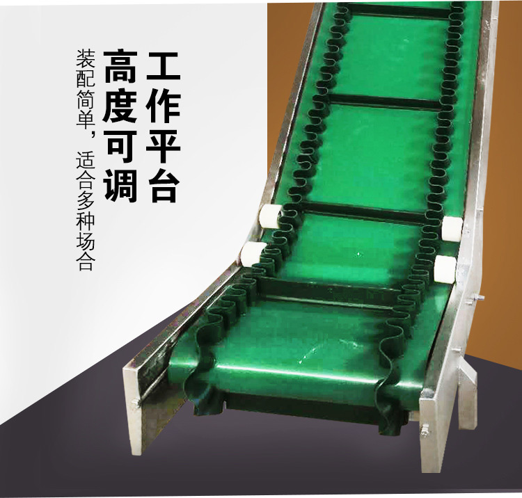 裙邊皮帶輸送機(jī)是在平形橡膠運(yùn)輸帶兩側(cè)粘上可自由伸縮的橡膠波形立式"裙邊",在裙邊之間又粘有一定強(qiáng)度和彈性的橫隔板組成匣形斗,對(duì)物料進(jìn)行連續(xù)輸送的設(shè)備??纱髢A角輸送甚至垂直提升散料。