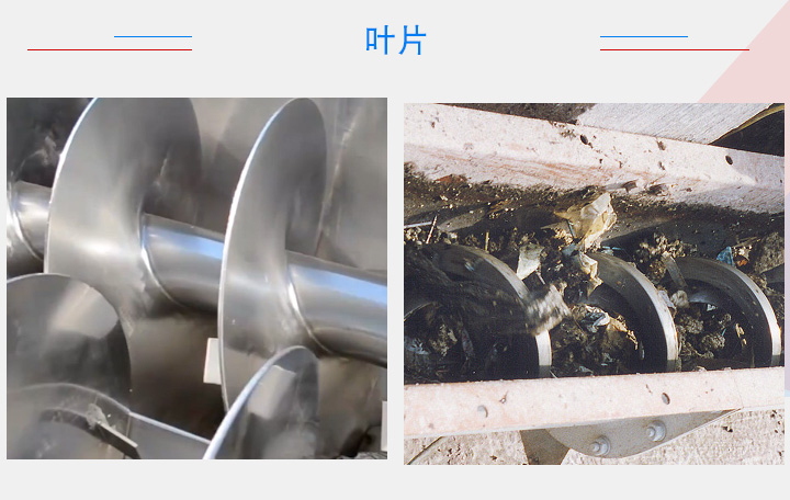 不同性質(zhì)的物料對(duì)螺旋輸送機(jī)的葉片形狀、材質(zhì)有不同的要求。針對(duì)一般物料,可選擇碳鋼材質(zhì)的有軸葉片,對(duì)于一些粘性大,纏繞性物流,就需要選擇無(wú)軸螺旋葉片,對(duì)衛(wèi)生環(huán)境有要求的物料,葉片一般建議選擇不銹鋼材質(zhì),磨琢性強(qiáng)的物料則要選擇錳鋼材質(zhì)的葉片。