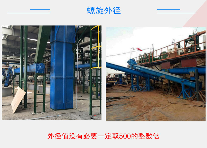 在相關(guān)參數(shù)穩(wěn)定的情況下,物料在料槽內(nèi)軸向移動(dòng)速度和圓周速度隨物料所在螺旋半徑的增大而增大。在選取螺旋輸送機(jī)的時(shí)候根據(jù)物料特質(zhì)選擇葉片和旋轉(zhuǎn)軸,直徑越大,效果越好,但是對(duì)于開(kāi)式螺旋輸送機(jī),如果螺旋外徑過(guò)大,就會(huì)增加其制造成本,且不利于冷卻。此外,外徑值沒(méi)有必要一定取500的整數(shù)倍。