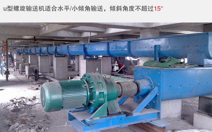 u型螺旋輸送機輸送傾斜角度不超過15°。