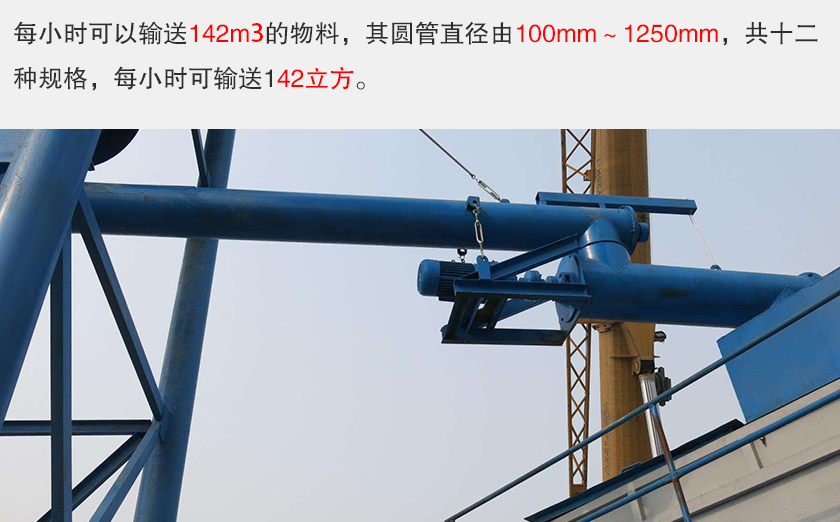 管式螺旋輸送機每小時可以輸送142m³的物料,其圓管直徑由100mm~1250mm,共十二種規(guī)格,每小時可輸送142立方。