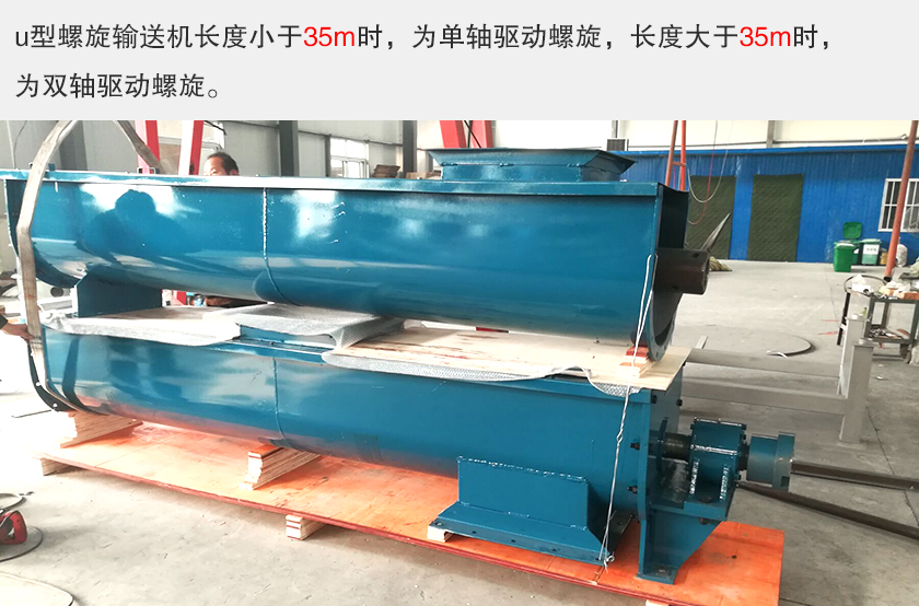 u型螺旋輸送機長度小于35m時,為單軸驅動螺旋,長度大于35m時,為雙軸驅動螺旋。u型螺旋輸送機適合小范圍輸送,不宜長距離輸送。